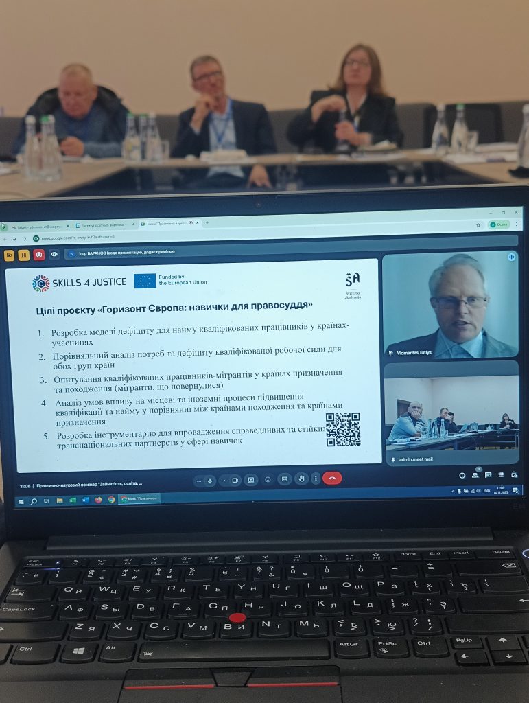 У межах цього заходу, окрім інших, були презентовані матеріали «Реалізація Проєкту 101132435 — SKILLS4JUSTICE Topic: HORIZON-CL2-2023-TRANSFORMATIONS-01-03 «ПАРТНЕРСТВО НАВИЧОК ДЛЯ СТІЙКОЇ ТА СПРАВЕДЛИВОЇ МІГРАЦІЇ»». Презентацію провів координатор Проєкту від ДНУ «Інститут освітньої аналітики» Сергій Мельник. Він також презентував учасникам воркшопу матеріали на тему: «Рекомендації щодо підготовки кадрів ЗВО відповідно до вимог до європейських професійних кваліфікацій», також підготовлені за результатами досліджень зазначеного Проєкту.